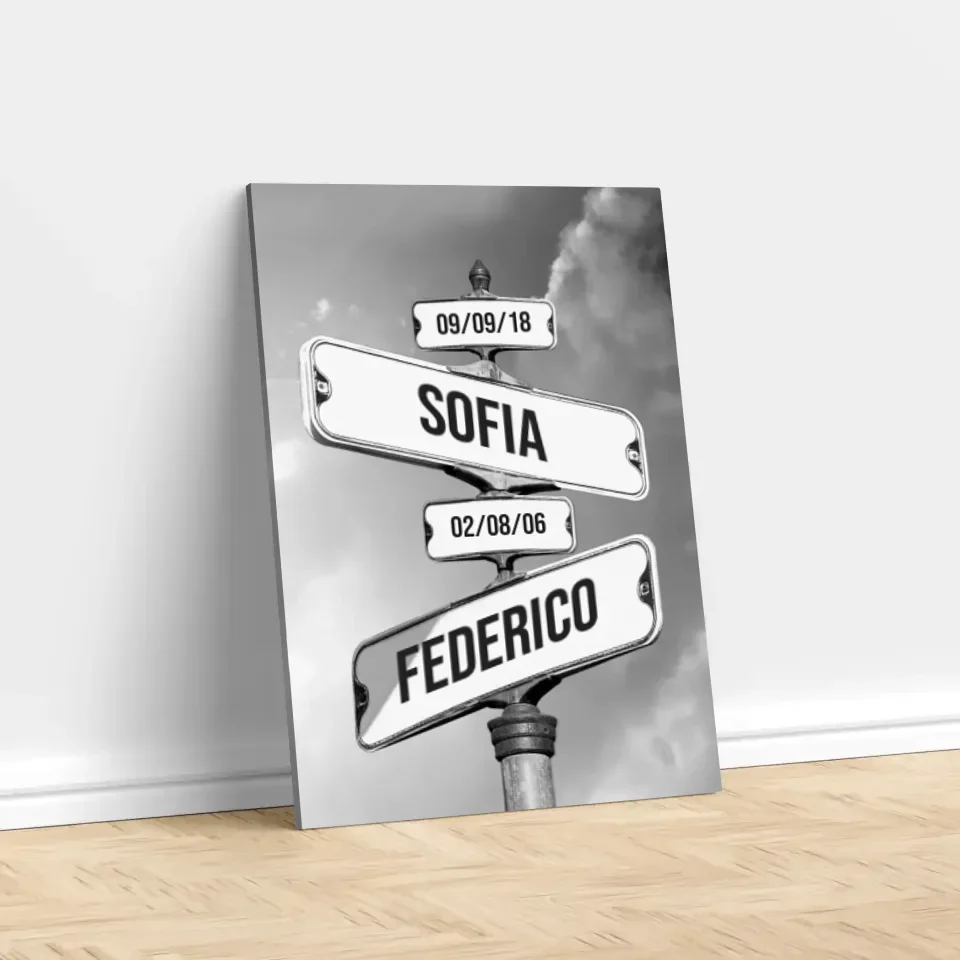Tela personalizzata "Cartello stradale vintage con data di nascita dei bambini"